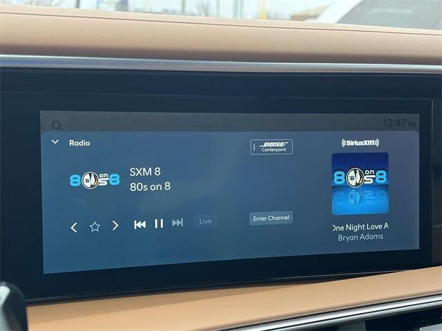- Radio: Infotainment Navigation System -inc: Bose 14-speaker premium audio system w/Centerpoint and SoundTrue enhanced technology, 12.3" color touchscreen, wireless Apple CarPlay and Android Auto, HD Radio, Sirius XM, Passenger Talk 2.0 in-car intercom system, dynamic voice recognition, rear seat quiet mode, Bluetooth® hands-free w/wireless audio streaming, multiple device connection (up to 2 devices), USB connectivity, Bluelink + connected car services, Wi-Fi hotspot, steering wheel audio controls and Over-the-Air (OTA) software updates
