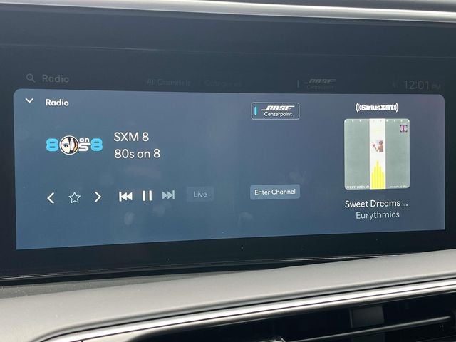- Radio: Infotainment Navigation System -inc: Bose 14-speaker premium audio system w/Centerpoint and SoundTrue enhanced technology, 12.3" color touchscreen, wireless Apple CarPlay and Android Auto, HD Radio, Sirius XM, Passenger Talk 2.0 in-car intercom system, dynamic voice recognition, rear seat quiet mode, Bluetooth® hands-free w/wireless audio streaming, multiple device connection (up to 2 devices), USB connectivity, Bluelink + connected car services, Wi-Fi hotspot, steering wheel audio controls and Over-the-Air (OTA) software updates