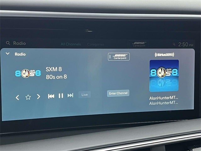 - Radio: Infotainment Navigation System -inc: Bose 14-speaker premium audio system w/Centerpoint and SoundTrue enhanced technology, 12.3" color touchscreen, wireless Apple CarPlay and Android Auto, HD Radio, Sirius XM, Passenger Talk 2.0 in-car intercom system, dynamic voice recognition, rear seat quiet mode, Bluetooth® hands-free w/wireless audio streaming, multiple device connection (up to 2 devices), USB connectivity, Bluelink + connected car services, Wi-Fi hotspot, steering wheel audio controls and Over-the-Air (OTA) software updates