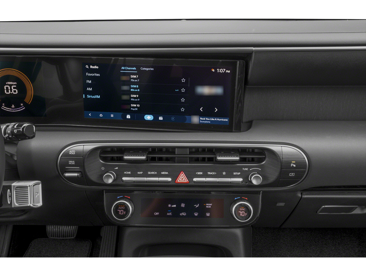 - Radio: Infotainment Navigation System -inc: 12.3" color touchscreen, wireless Apple CarPlay and Android Auto, HD Radio, Sirius XM, Passenger Talk 2.0 in-car intercom system, dynamic voice recognition, rear seat quiet mode, Bluetooth® hands-free w/wireless audio streaming, multiple device connection (up to 2 devices), USB connectivity, Bluelink + connected car services, Wi-Fi hotspot, steering wheel audio controls and Over-the-Air (OTA) software updates