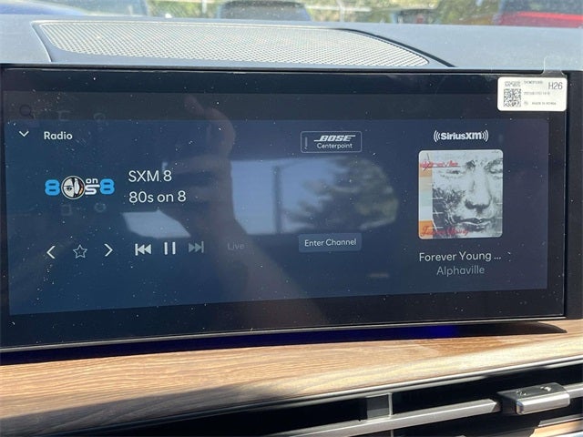 - Radio: AM/FM/HD Bose Premium Audio System -inc: 12 speakers including subwoofer, external amplifier, 12.3" wide touchscreen, Apple CarPlay and Android Auto, Bluetooth® hands-free w/wireless audio streaming, dynamic voice recognition, USB connectivity, SiriusXM, Blue Link+ connected car system, navigation system including traffic flow w/incident data via HD Radio (HERE) and rear seat quiet mode