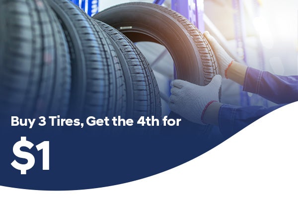 Plus tax and applicable fees. Valid with purchase of three qualifying in-stock tires only. May not combine with any other offer. Must present coupon at time of purchase. See dealer for details.