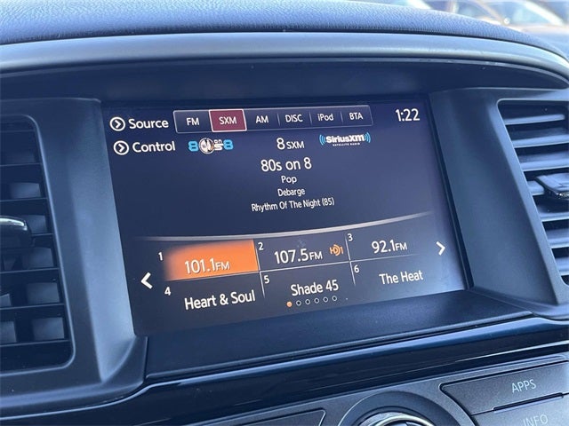 - Radio: AM/FM/CD Audio System w/NissanConnect -inc: 6 speakers, 8" color display w/multi-touch control, HD Radio, SiriusXM satellite radio, USB connection ports (2 type A) for iPod interface and other compatible devices, SiriusXM Travel Link (weather, fuel prices, movie listings, stock info and sports), Bluetooth® hands-free phone system and streaming audio via Bluetooth®