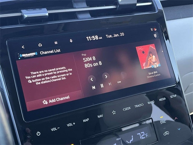 - Radio: Bose Premium w/AM/FM/HD Audio System -inc: 10.25" color touchscreen w/onboard navigation and traffic flow including incident data via HD Radio (HERE), digital 8-channel amp (w/custom equalization, digital signal processing, and dynamic speed compensation) and 8 speakers (1 twiddler on center of instrument panel, 2 tweeters, 2 front door, 2 rear door, 1 woofer on rear quarter panel), SiriusXM satellite radio (3-month trial subscription), BlueLink+ connected car, Apple CarPlay and Android Auto, dynamic voice recognition and USB connectivity